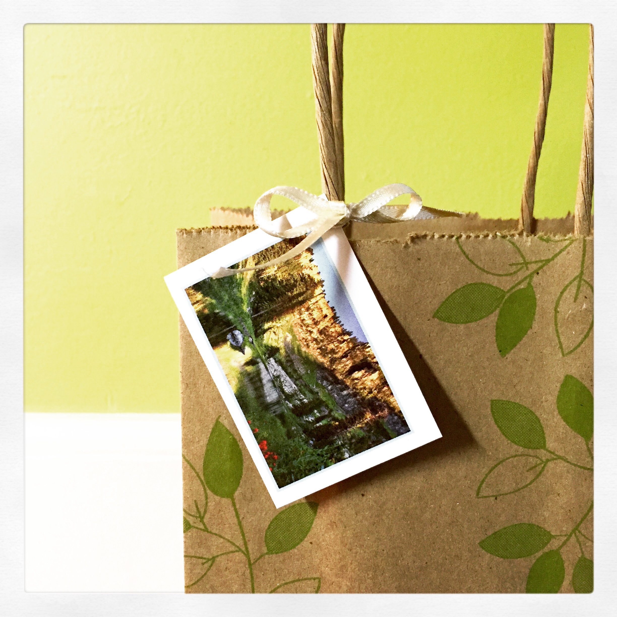 This year I have been lucky enough to have Forage items on display in Bluebird Vintage, a great shop in Boonton, NJ. Not only is it a great place for locals to become familiar and browse some of my items but it is also a super place for them to pick up their custom orders! When I drop off their bags of goodies, I of course have to label them so that we know which bag belongs to which person. I’m always trying to use recycled materials for my packaging, but sometimes, well it just isn’t pretty. For my bag labels, I came up with a cute, easy and eco friendly way to do so. I cut up the back page of old calendars. (you know the page that shows you the tiny version of all the pretty photos or illustrations that will be featured every month?) They make the prefect size gift tag!